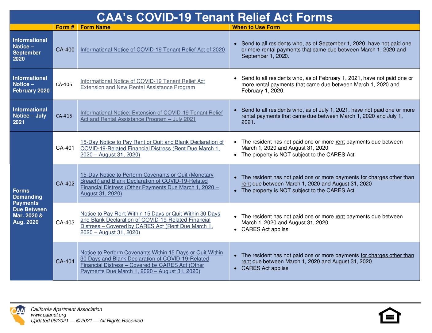 CTRA Forms Table • California Apartment Association