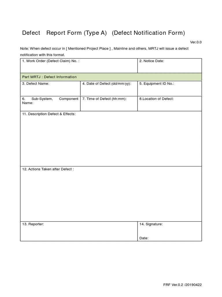 Web a defect report is a document that includes complete details about the application/software defects, sources, what are the actions needed to. Web easily create defect reports with our customizable templates. Web a defect report systematically identifies, documents, and resolves issues, ensuring projects stay on track and within budget. Web product defect report form. Web fill out your building defect.