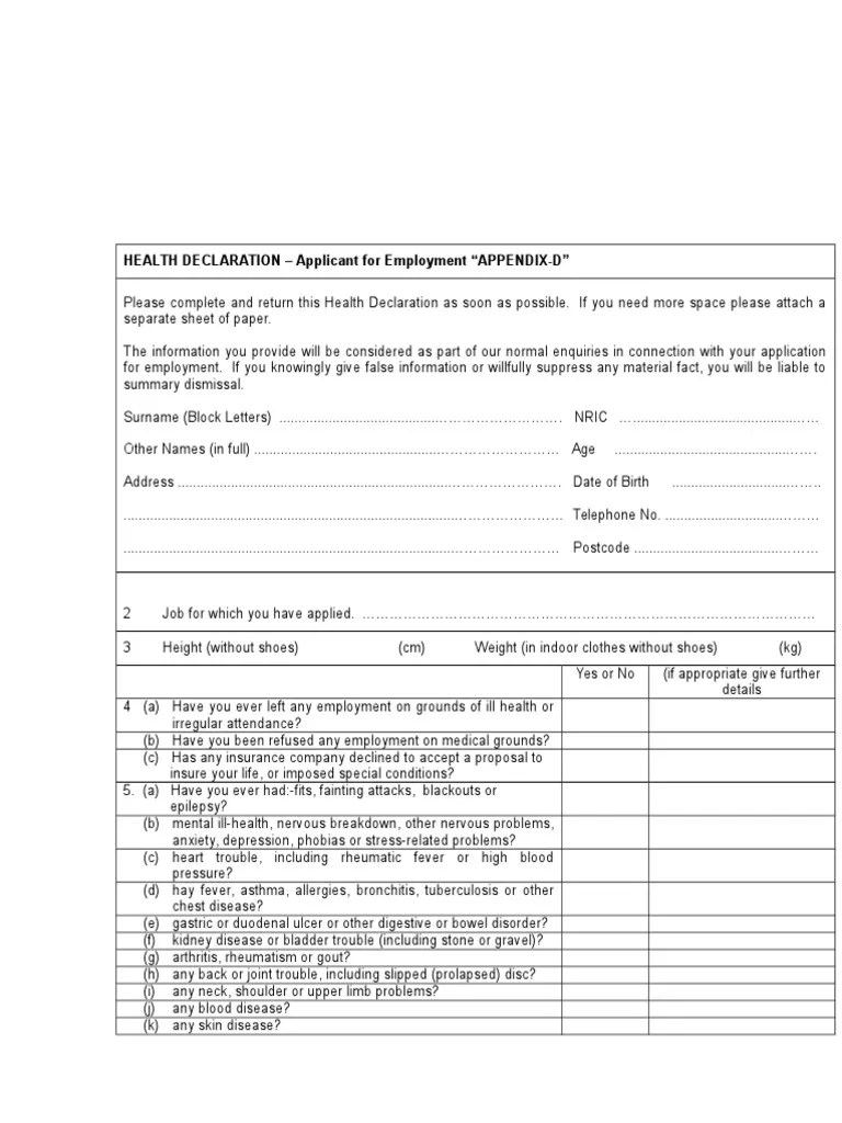 E Health Declaration Form FREE 9+ Sample Health Declaration Forms in MS Word PDF To