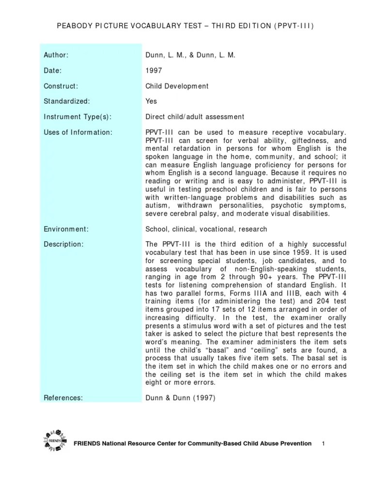 Web normed with a sample of 3,540 individuals ages 2½ to 90 representative of march 2004 u.s. Web enlarged and colorized, this ppvt edition is available in two parallel forms (form a and form b) that are administered individually. Web there are two parallel forms (form a and form b). Web one form can be used prior to intervention to.